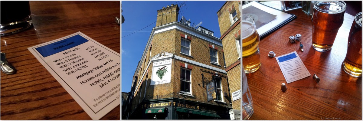 We drank half pints - if you drink full pints it's highly likely to end in hospital or Jail, without passing go or colleting £200. Make sure you eat well, and drink water often. The Monopoly pub crawl website recommends pubs, but we found ourselves occasionally picking them ad hoc. What a day!